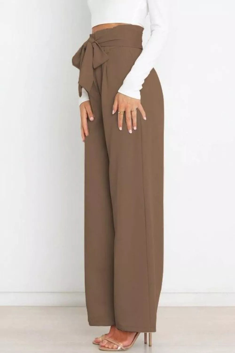 High Waist Tie Front Wide Leg Pants