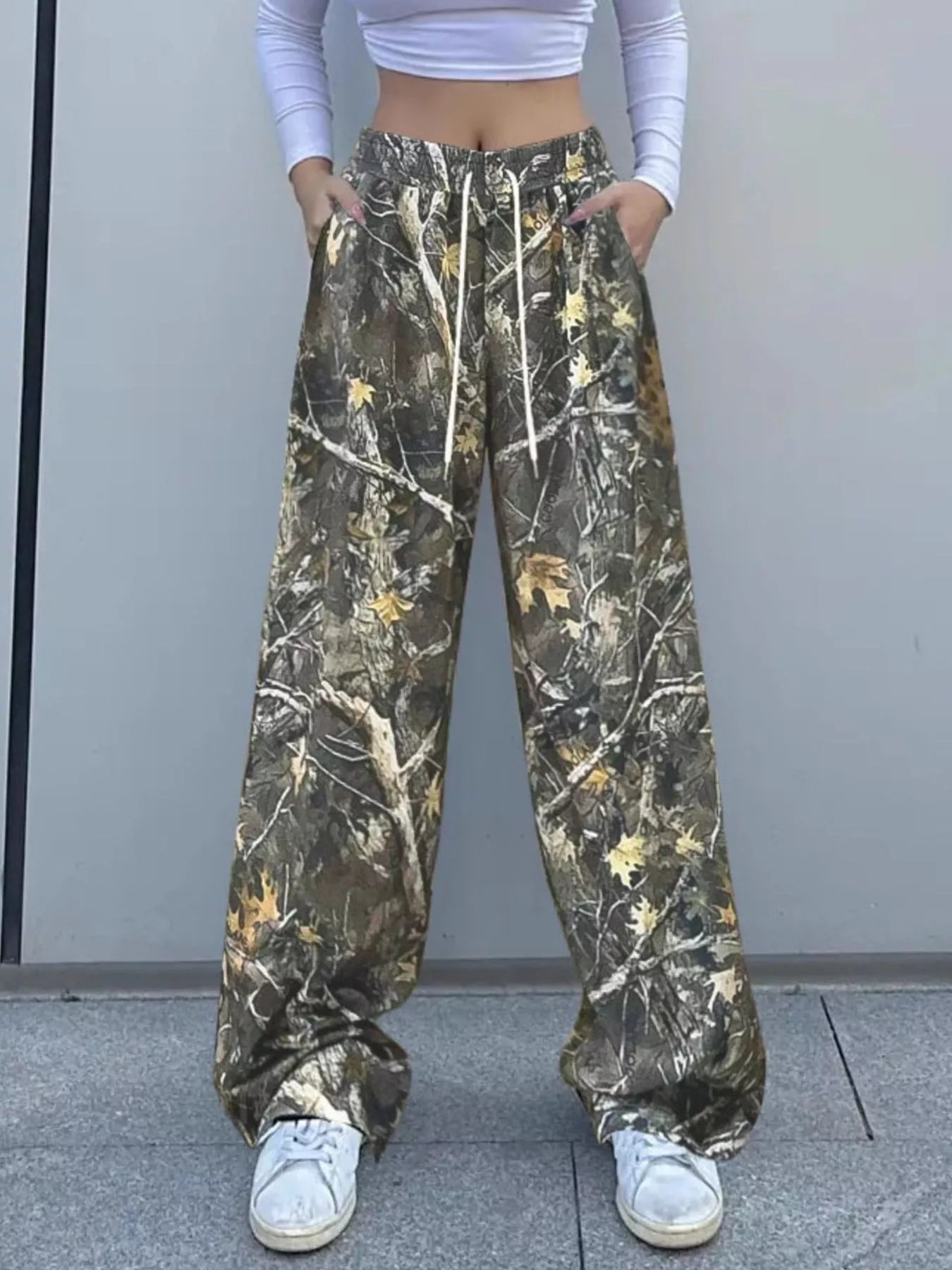 Relaxed Fit Camo Print Drawstring Waist Pants